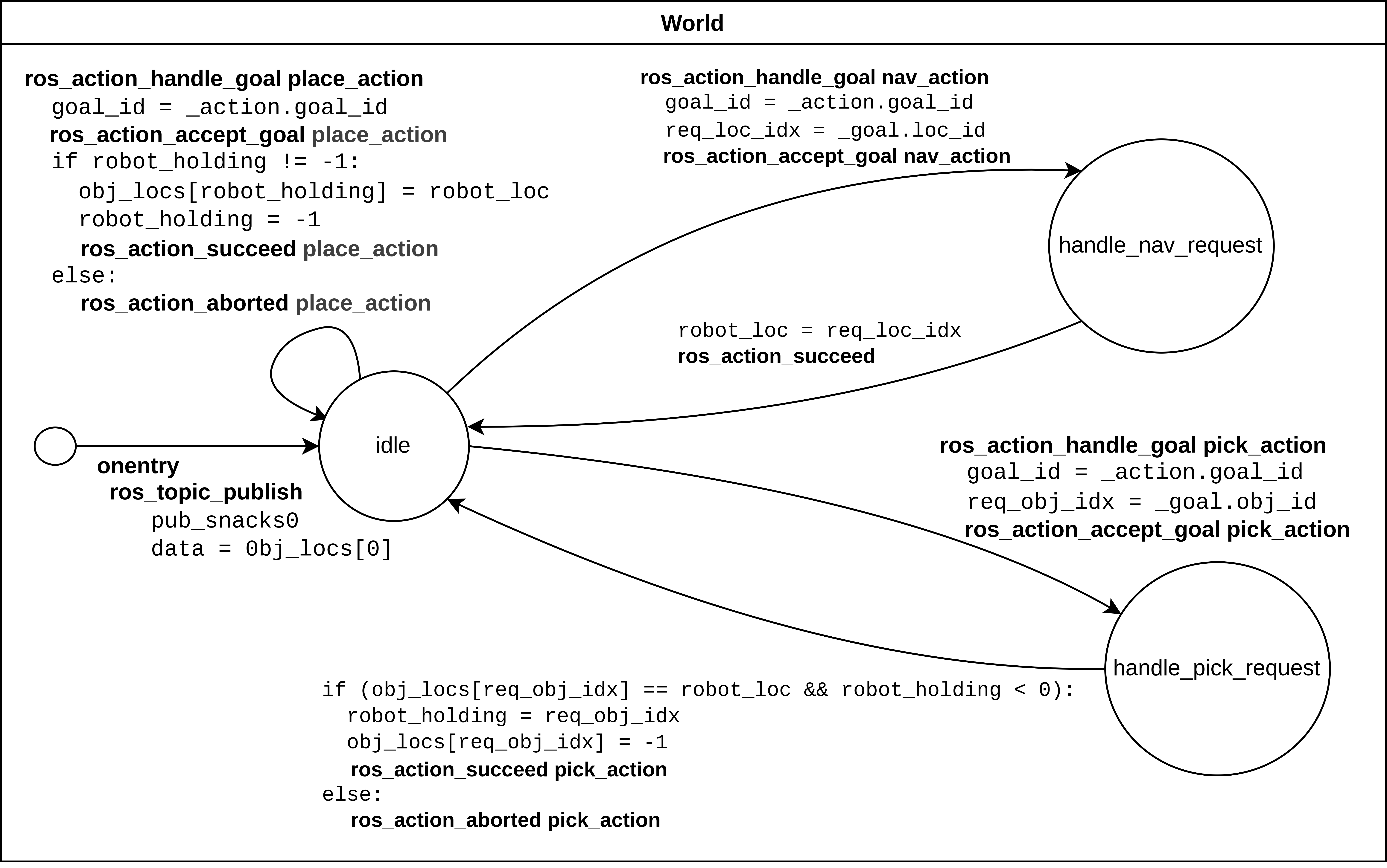 In addition, the model of the environment, also known as world, is given in SCXML. We will go into the details of the environment model later.